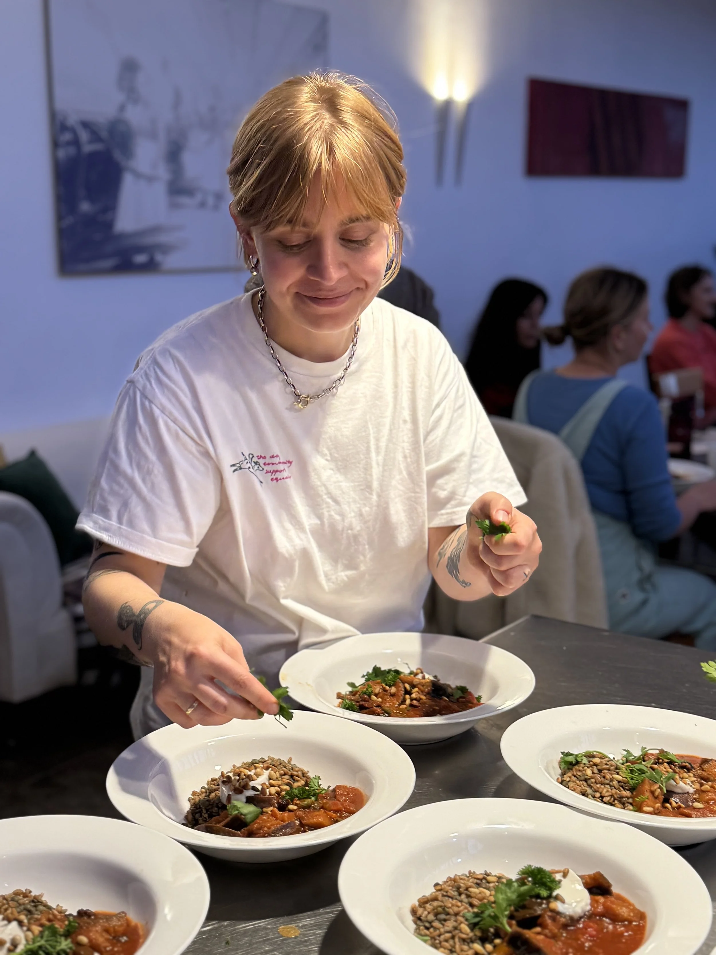 Jej podejście nie polega na wymyślnych trikach to raczej codzienna uczta z tego, co świeże, aromatyczne i dobrze dobrane. Współpracowała z piekarniami (m.in. w Krakowie), prowadziła menu śniadaniowe, pop-upy, warsztaty kulinarne, była częścią projektów takich jak RoślinnieJemy czy Chefs for Change a także napisała książkę “Roślinna Sprawa”.